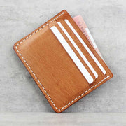 A good wallet should be comfortable in your pocket and bring you some pleasure or even compliment every time you take it out. This classic cardholder is visually minimal but has plenty of storage. If you don’t like carrying bulky wallets, this cardholder is all you need. It has 6 card slots for your cards and a central slot that fits folded bills. It is handcrafted from full-grain leather that will only get softer and more patinated with the use.