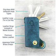 This minimalist and innovative design key case will not only keep your keys organised but also avoid jingle and scratch in your pocket. Instead of using metal screws it uses leather strap that securely holds the keys. The leather strap fastens using the 3 holes at the back of the case.